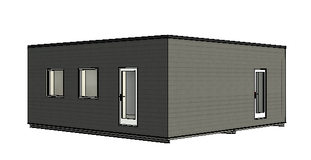 Beboelsespavillon med køkken/alrum, to værelse, gang og badeværelse. Beklædning er sort klinkbeklædning. Der er vinylgulve i gang og badeværelse, og laminat i køkken/alrum og værelser.