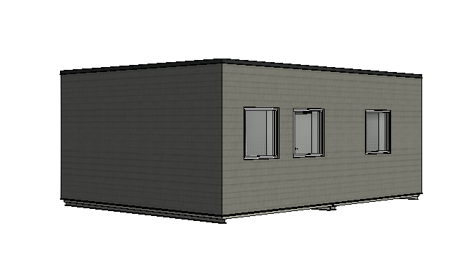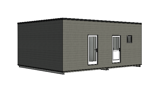 Beboelsespavillon med køkken/alrum, to værelse, gang og badeværelse. Beklædning er sort klinkbeklædning. Der er vinylgulve i gang og badeværelse, og laminat i køkken/alrum og værelser.